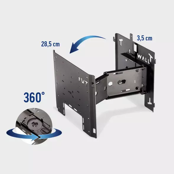 alphatronics SLIM MOUNT 290 Rotation on täydellinen teline 19 - 40 tuumaisille televisioille. Sen säädettävä seinäetäisyys (30- 285 mm) sallii joustavan asettelun, ja 3 nivelisen kääntövarren avulla voit helposti säätää etäisyyttä ja tv:n sijoitusta.