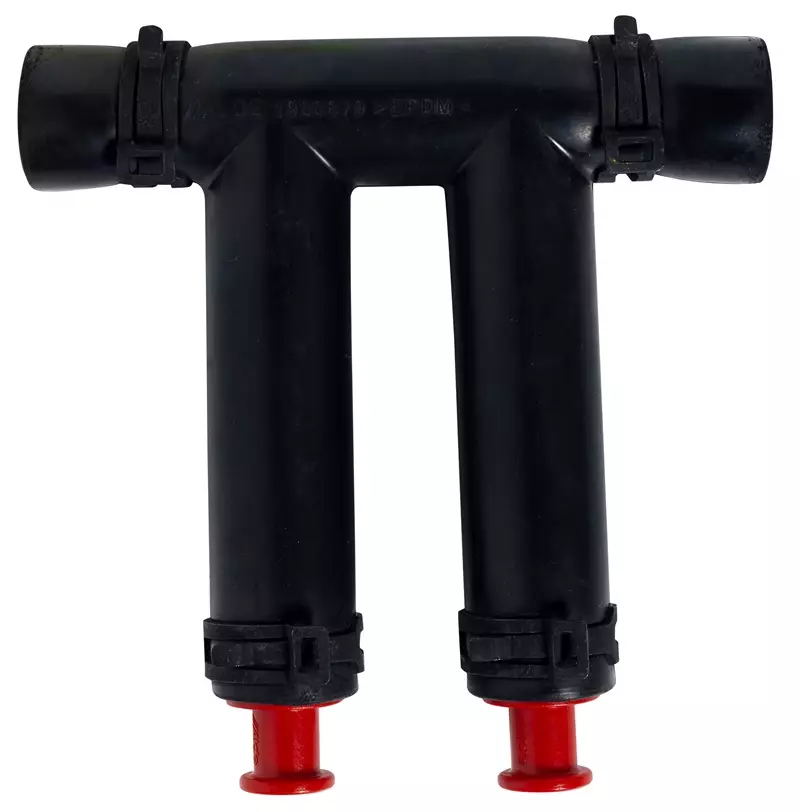 Liitoskappaleessa on kaksi täyttö/tyhjennysletkua, käytettäväksi pohjasta täytettävissä järjestelmissä.