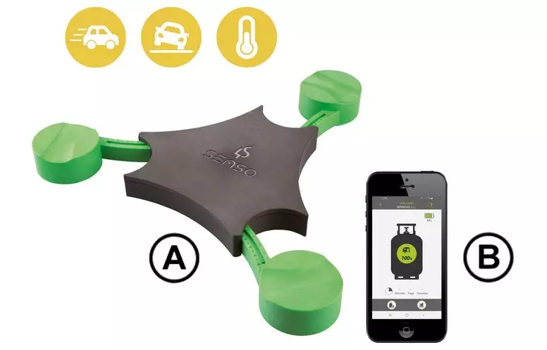 Senso4s PLUS. Digitaalinen tasomittari kaasupulloille - käytettäväksi vapaa-ajan ajoneuvoissa tai kaasugrillissä. Bluetooth-etälähetyksellä mittaus- ja