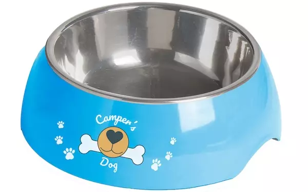 Ruokakulho ja vesiastia koiralle. Valmistettu melamiinista ja ruostumattomasta teräksestä. Pohjassa AntiSlip-pinnoite. Mitat: - 18,5 x 6 cm, halkaisija 22 cm.