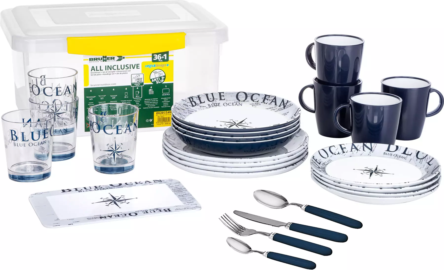 Brunner melamiiniastiasto Blue Ocean, liukueste, 36 osaa