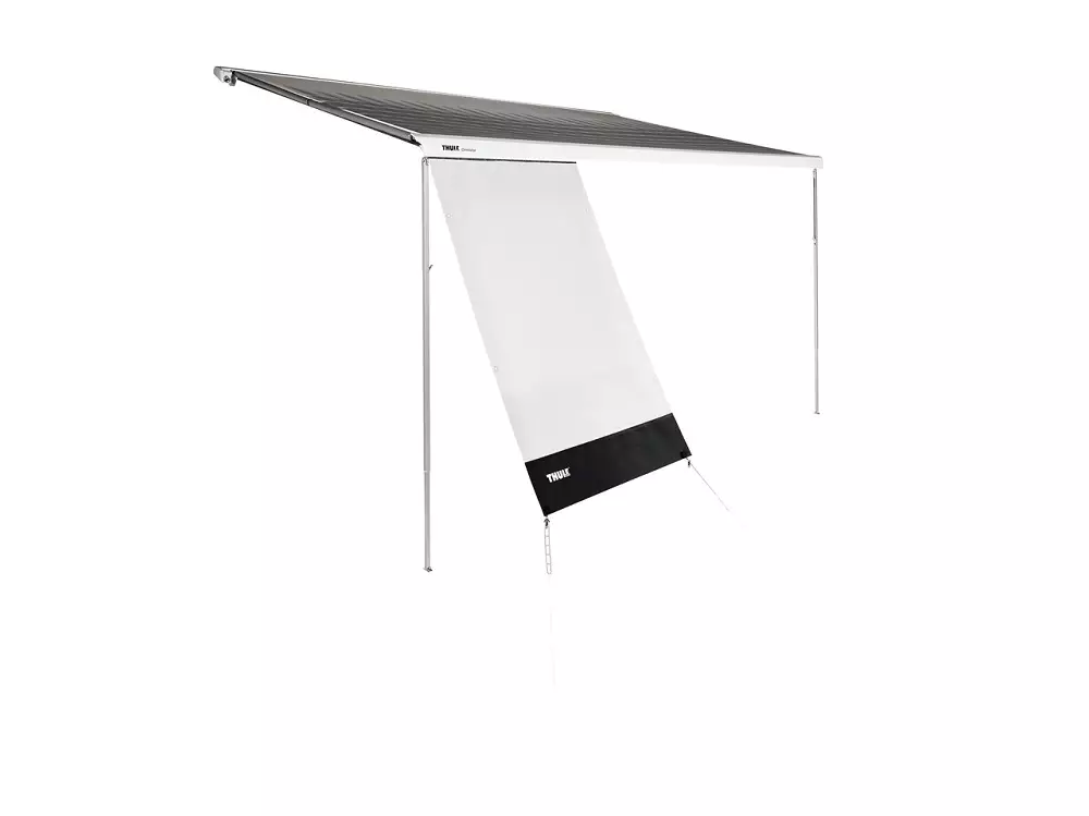 Katseilta suojaava etuseinä Thule-markiiseihin päästää tuulenvireen sisään ja pitää auringonpaisteen loitolla.