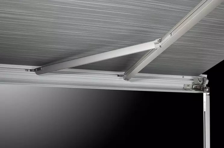 Lujarakenteisten jousivarsien ja patentoitujen kiristysvarsien ansiosta markiisikangas kiristyy optimaalisesti ja suojaa entistä paremmin tuulelta.Vakioratkaisu vähintään 4,02 metrin markiisipituuksille.