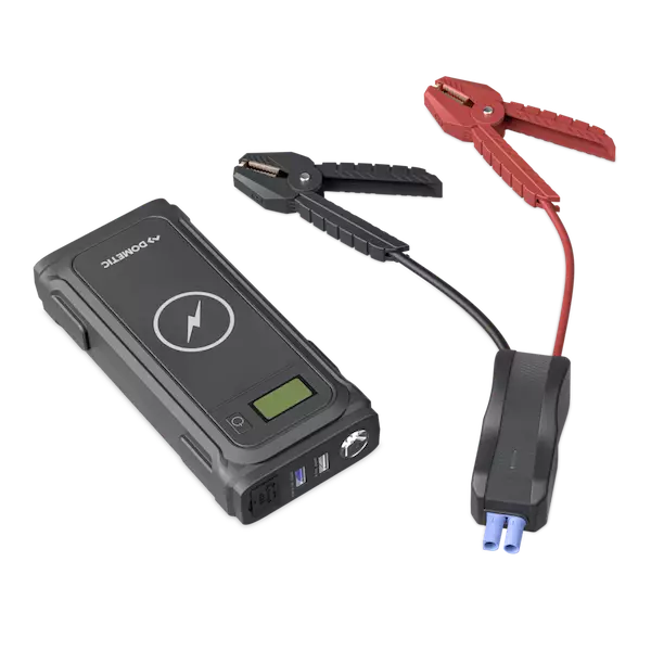 Virtapankki, jolla käynnistät myös ajoneuvosi! Tämä kompakti laite sisältää hyödyllisiä ominaisuuksia – kuten kaksi USB-porttia digitaalisten laitteiden lataamiseen, langaton latausalusta älypuhelimellesi, 12 V DC -pistorasia kylmälaukullesi ja kaksi käynnistyskaapelia. Superkirkas LED-valo on kätevä hätätilanteissa, esim. sähkökatkon aikana tai kun autoon tulee ongelmia yöllä. Dometic PJS1000:n teho riittää 6,0 litran bensiinimoottoreiden tai 4,0 litran dieselmoottoreiden käynnistykseen. Sen integroitu litiumakku tuottaa 1000 A huipputehoa – riittää 30 tehostettuun käynnistykseen yhdellä latauksella.