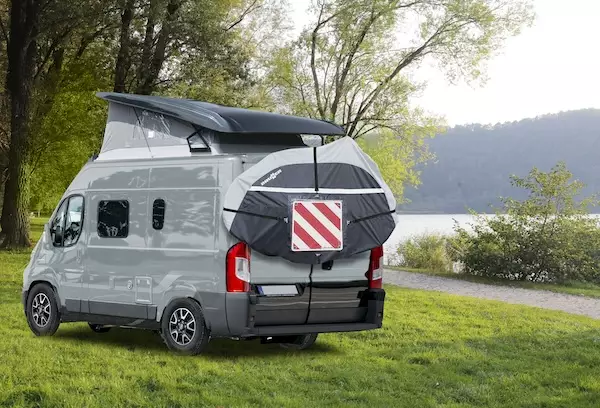 Brunner polkupyöränsuoja on valmistettu vettähylkivästä polyesterikankaasta. Suojassa on tasku varoituskyltille.