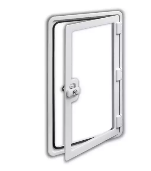 Dometic SK 4. Huoltoluukku, 700 x 405 mm. Tämä siisti, säänkestävästä ASA-muovista valmistettu huoltoluukku voidaan asentaa vaaka- tai pystysuoraan, minkä lisäksi se on helppo kiinnittää ajoneuvon seinäaukkoon ilman ruuveja.