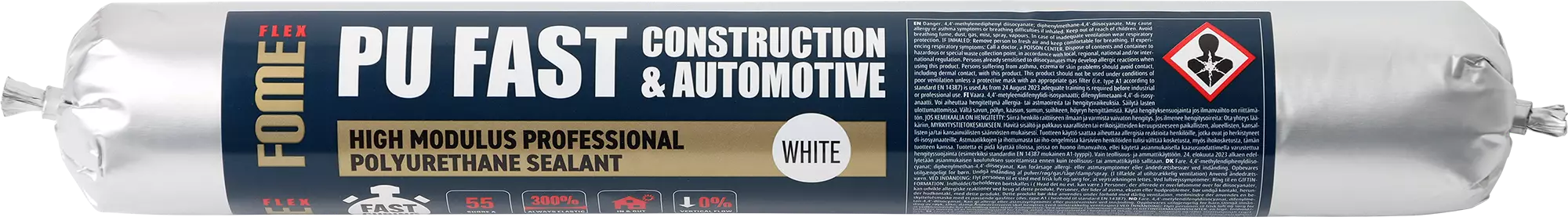 Fome Flex Pu Fast Construction&Automotive HM. On nopeasti kovettua, korkea moduulinen, vahva tartuntakyky, polyuretaanipohjainen liima- ja tiivistemassa. Käyttö: autojen, peltisaumojen tiivistys. Tiivistys vettä, ilmaa, kaasua ja pölyä vastaan