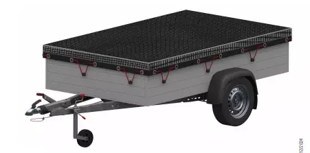 Kuormaverkko materiaali polyeteeni, taitetut reunat purjerenkaineen 40cm välein missä venyvä sidontanauha