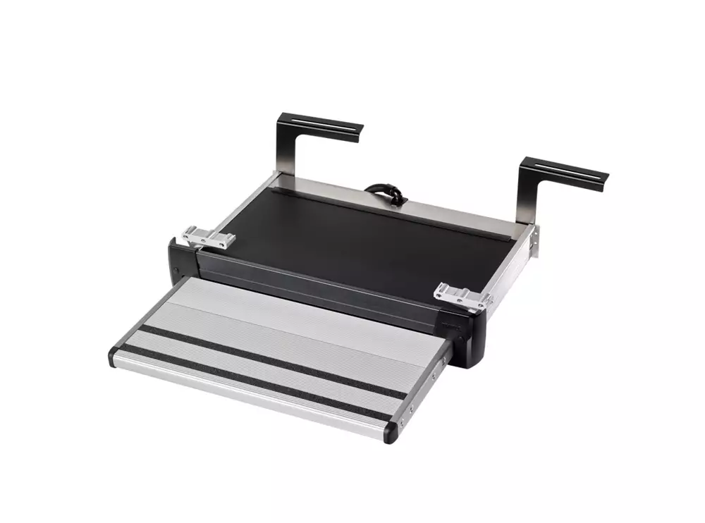 Auton liukuoven alle asennettava askelma helpottaa sisäänkulkua Helppo varastoida manuaalisesti ilman työkaluja sähkökatkojen varalta Tyylikäs viimeistely sopii pakettiauton nykyaikaiseen muotoiluun Ei teräviä reunoja etupuolella Näppärä ja monitoiminen kaapelilähtö, joka on suojattu vedeltä ja pölyltä Integroidut harjat suojaavat sisätilat tehokkaasti pölyltä Luistamattomat nauhat varmistavat turvallisen sisäänkulun EMV- ja CE-standardien mukainen. Käytetyt laatustandardit ovat eurooppalaista EN1646-standardia tiukemmat Vakiovarusteena on katkaisin ajoneuvoon sijoitettavalle, lisävarusteena saatavalle varoitusvalolle, joka auttaa estämään liikkeelle lähdön, kun porras on ulkona Kestävät ja kevyet materiaalit Tuotteeseen voidaan integroida LED-valot, jotta näkyvyys on optimaalinen Saatavana erilaisia asennussarjoja pakettiautoille