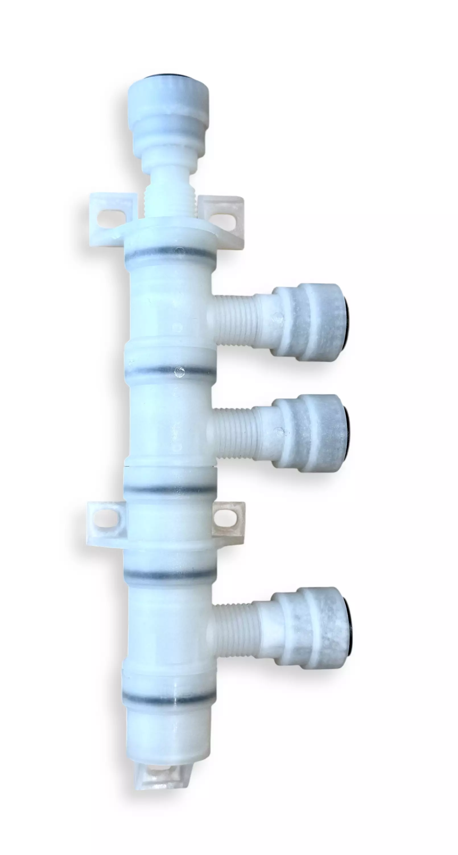 Vesijärjestelmän kolmiosainen jakokappale 12 mm John Guest kovaputkiliitännöillä.